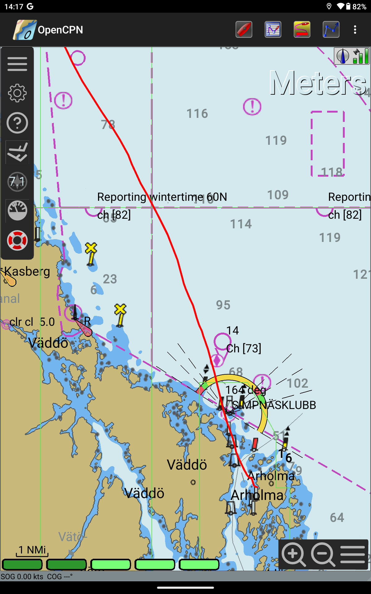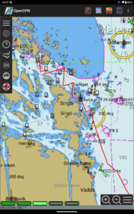 First we need to beat against the wind through the last row of Roslagen skerries, and when we leave this behind, we can turn to the south. Unfortunately, the wind turns too and we need to sail against it again.