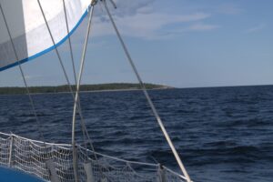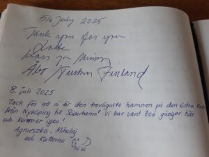We start by staying longer in Segelvik as we want the swell to subdue. We cast off around noon. The waves are still uncomfortable. Micke started walking on the boat and was checking the situation outside. No photos as we were busy taking care that he doesn’t fall overboard.