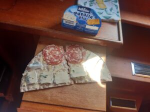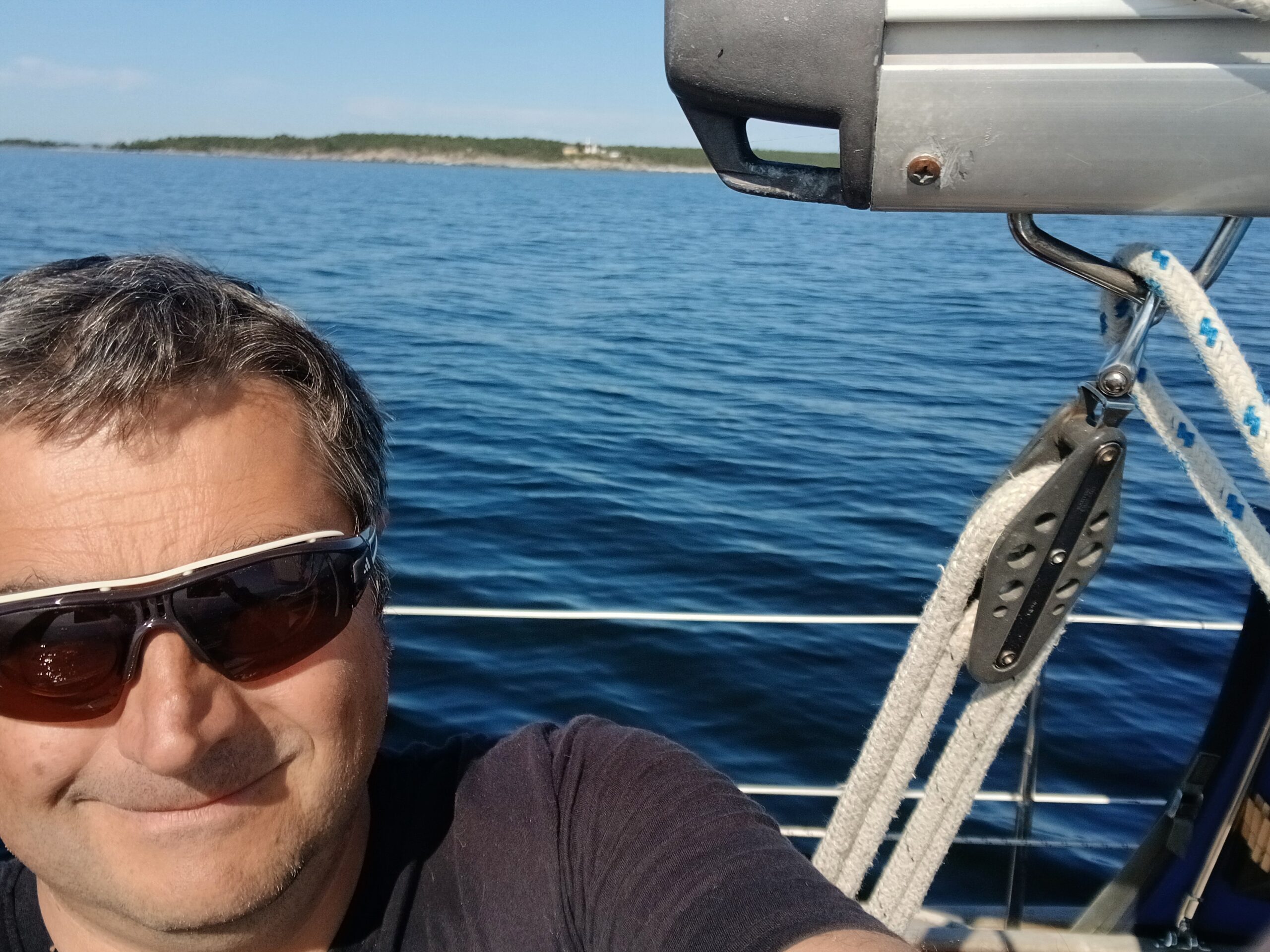 On Wednesday, we sail off quite early. First we go under engine and then we try to catch a wind, but it is too weak. We try butterfly and other styles but we never go faster than 3.5kn.
