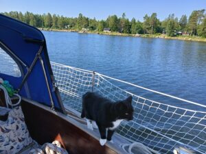 On Friday, I take a train and get the car from Lidingö, we pack our stuff and the Cats from the boat (quite an effort due to crowds on the quay) and we return home, leaving the boat alone for several weeks.