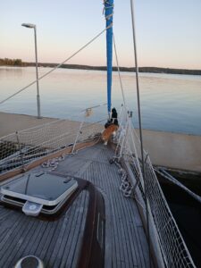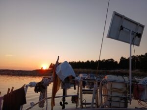 Tuesday morning, we managed to gather Cats onboard, so we leave Mellanfjärden sailing south. Underway, the wind was appearing and disappearing, but the spirits were high despite the swell. After sailing the whole day we searched for a good spot on Tunaolmen islands but everything was booked out there so we turned back to a small harbour on Hornslandet called Hölick.