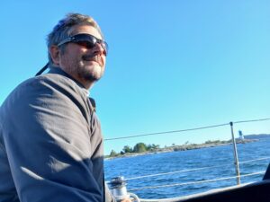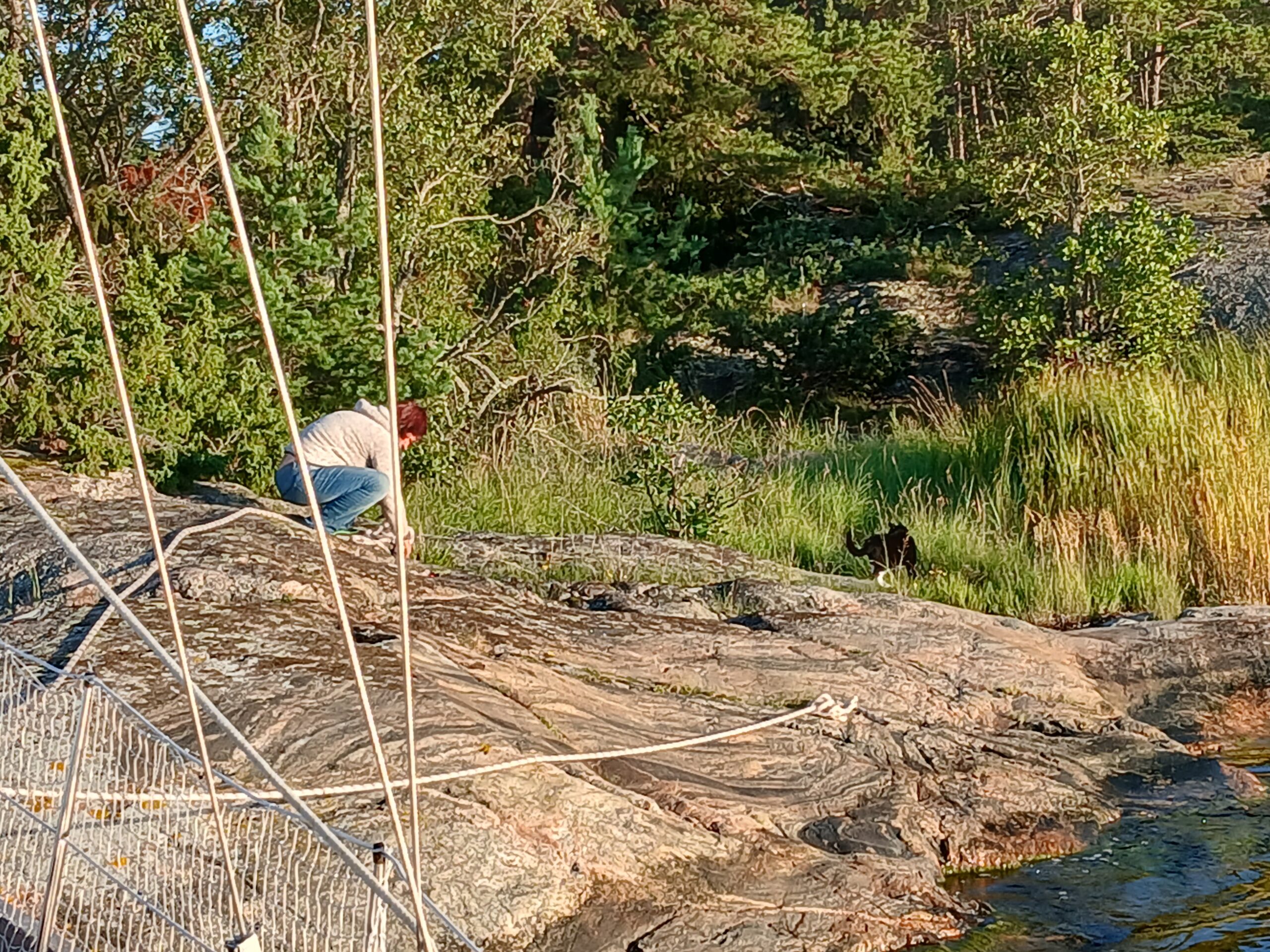 We arrive at Stora Brännskär – this is Södermanland skerries not far from Trosa. Micke stays onshore for the night and Kajjan sleeps on the boat – the opposite of the usual configuration.
