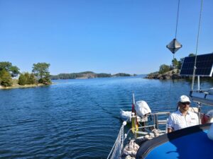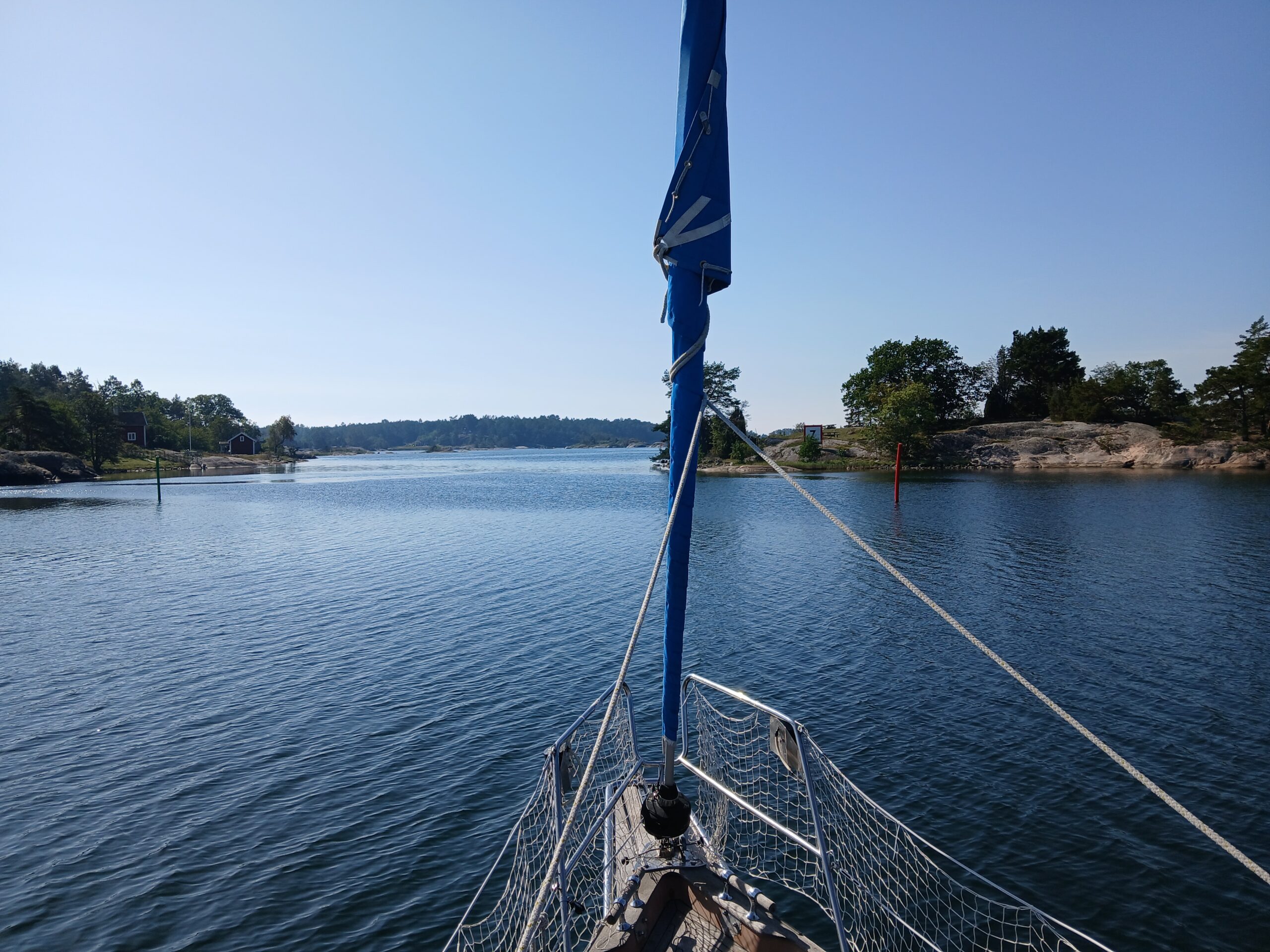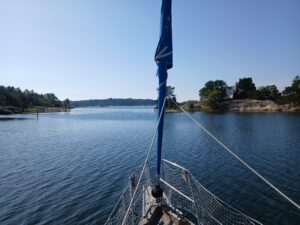 On Friday 5.09, the wind is quite small, but we believe that the waves on the open sea are quite high after yesterdays wind. We continue the inland route. We pass the narrow but known to us passage of Savö. The Savö Cafe tempts us, it advertises that it Is open. After we dock to it we get to know that it closed as the season is over. Pity they didn’t take down the ads. We then sailed through the picturesque Stendörren passage for the first time – narrow and shallow.
