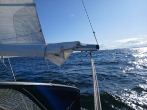 On Tuesday 26.08, the wind is very weak but the swell is big after yesterday’s strong wind. We sail despite this because we need to start moving if we want to get somewhere.
