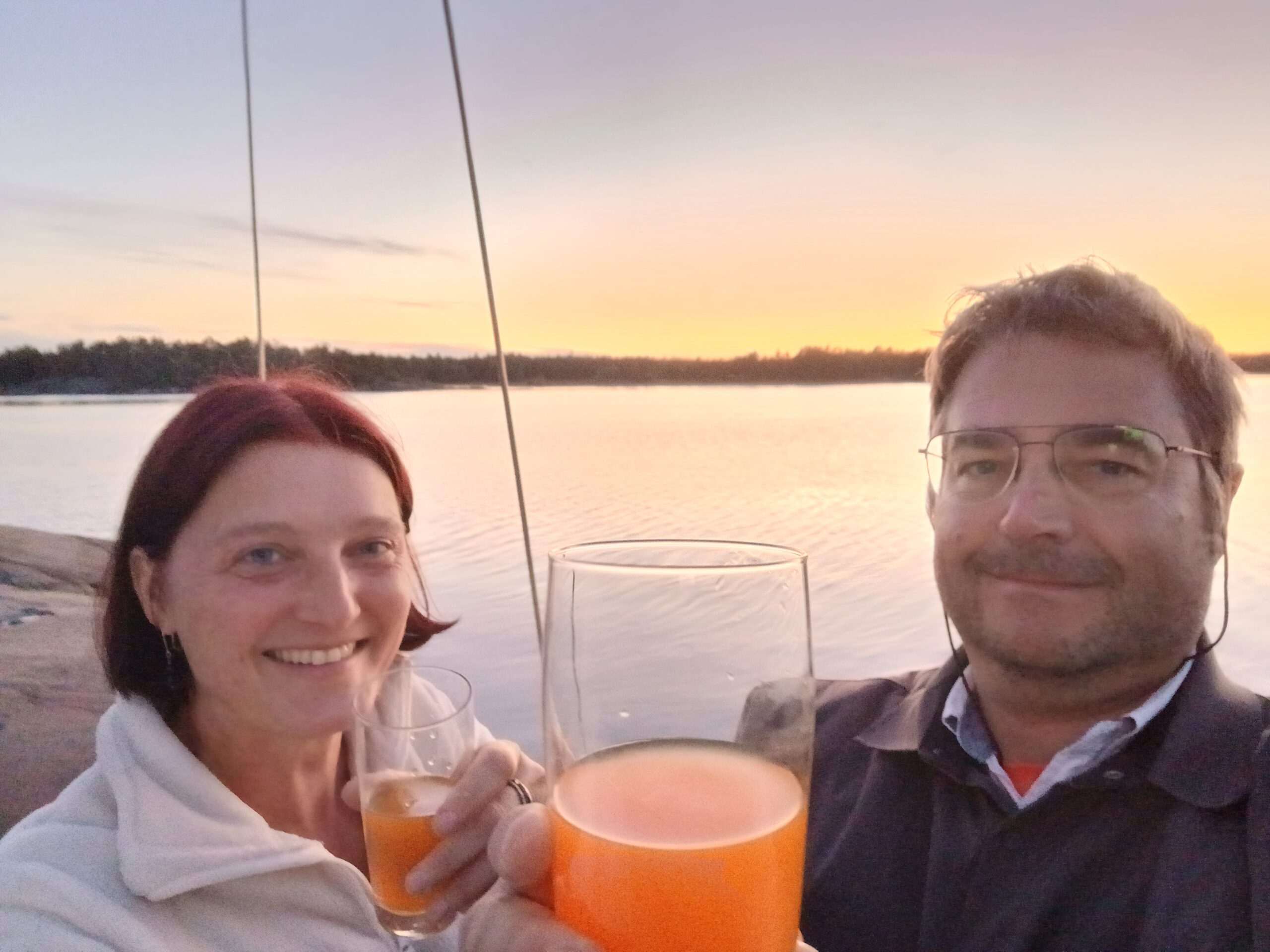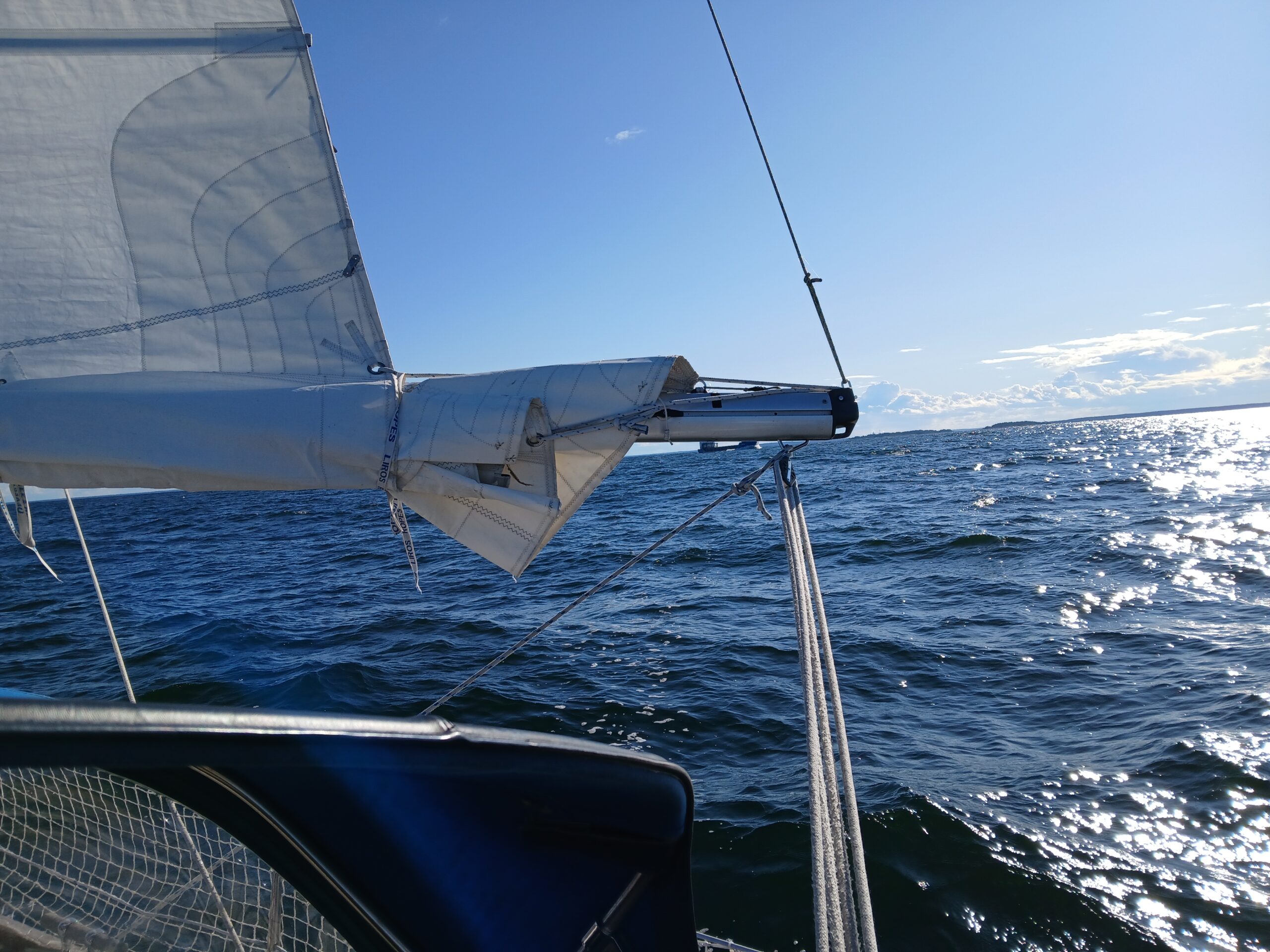 We pass the Björn cape and turn to a more southern heading, A wind comes – from the south. We continue under engine, aiding with sails sometimes.