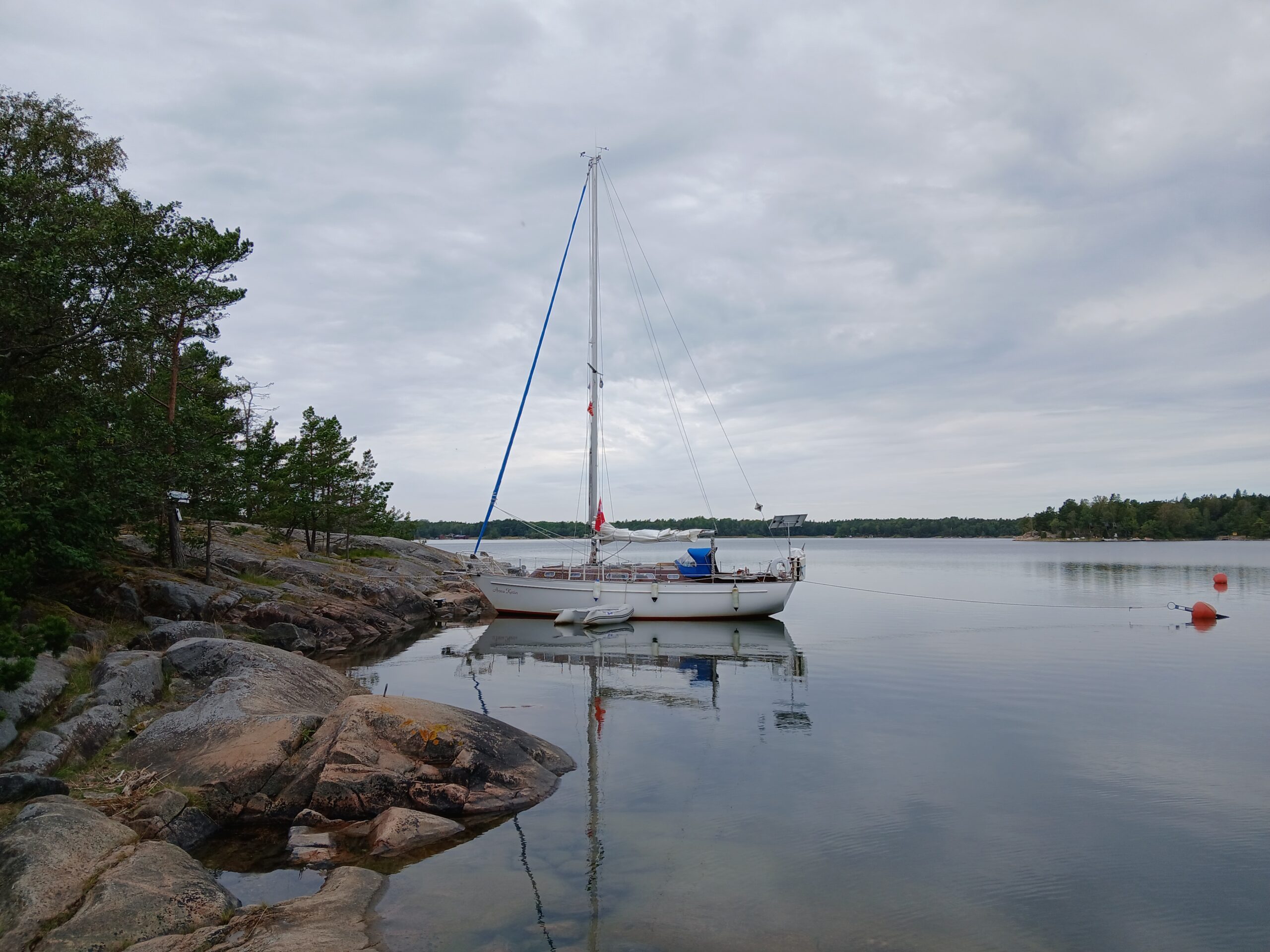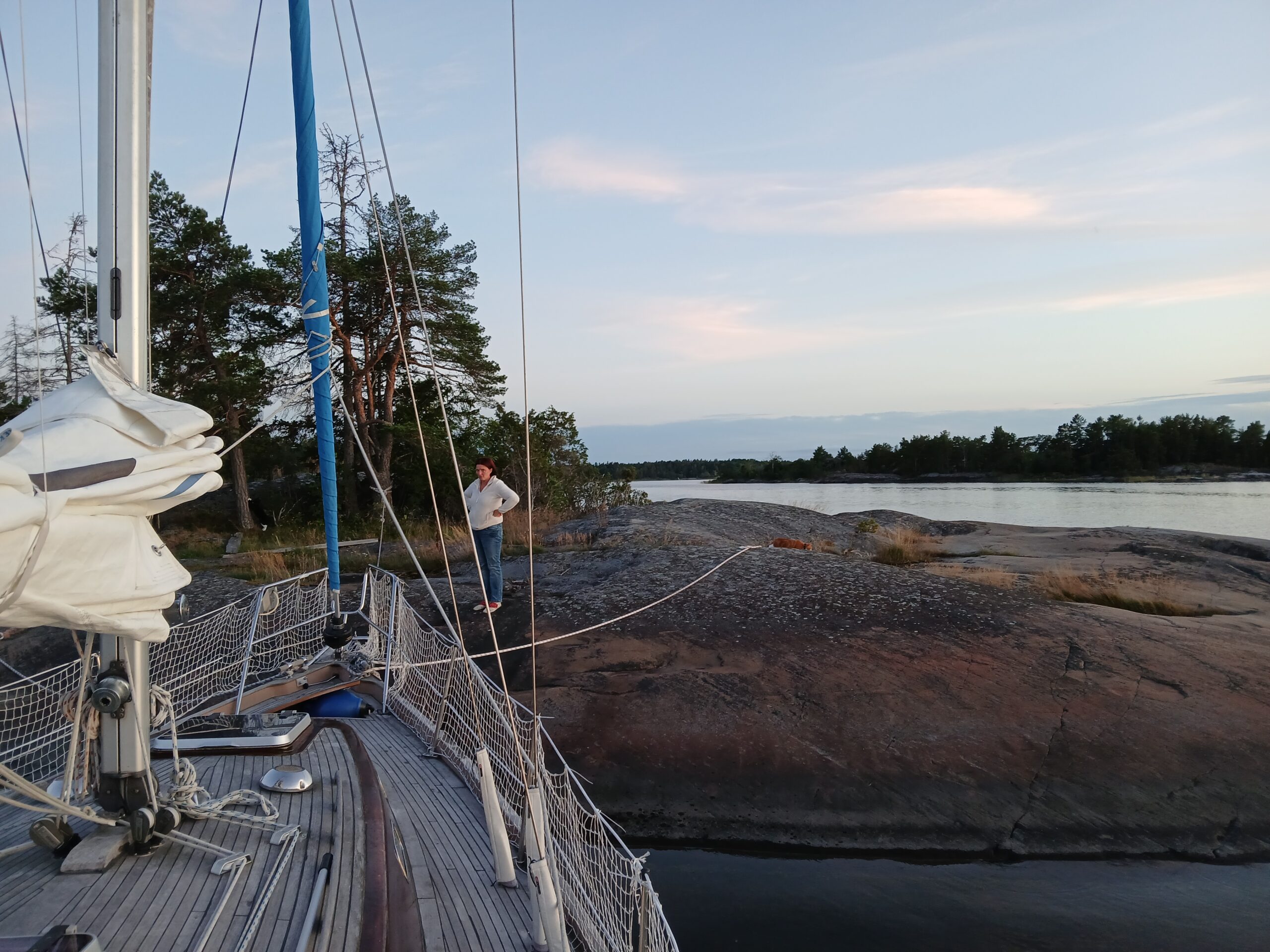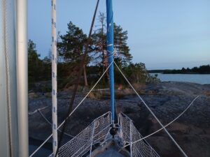Next day, Thursday 28.08, we sail among Roslagen skerries. The wind comes from the bow direction or not at all so it is engine all the time again. After 3 hours, we arrive at an island called Vässerö where we end for today, because it is pretty and we haven’t yet been here.