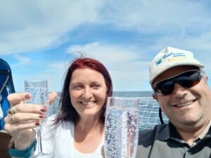 We sail north and pass the 60th latitude. We celebrate this with tonic.